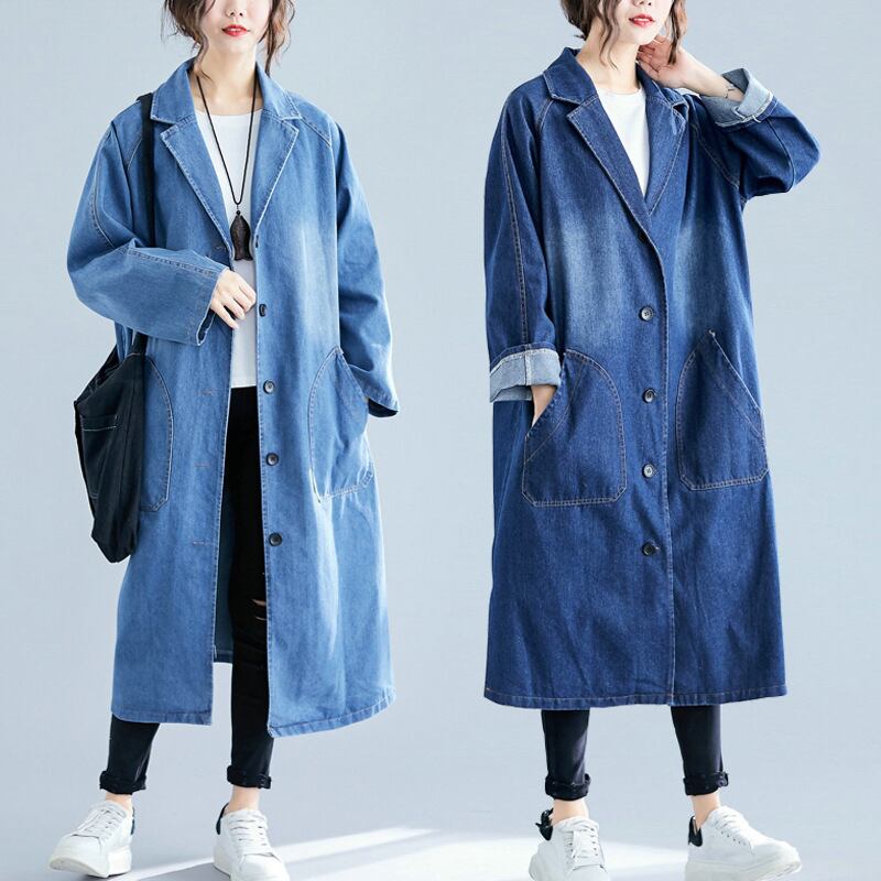 【レディース 秋 冬 新作 デニムジャケット コート トップス 長袖 ロング上着 オーバー ゆったり 3色】