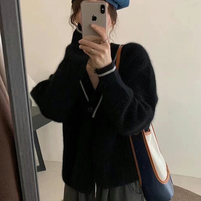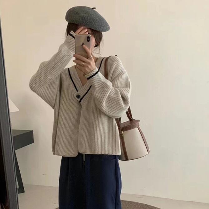深めVネックがすっきり上品な印象 Vネックカーディガン