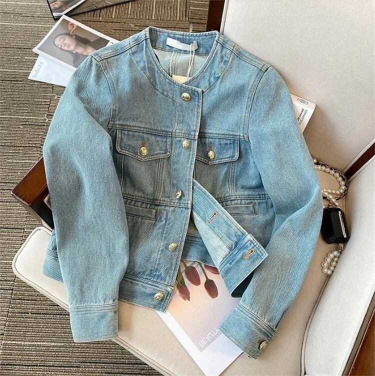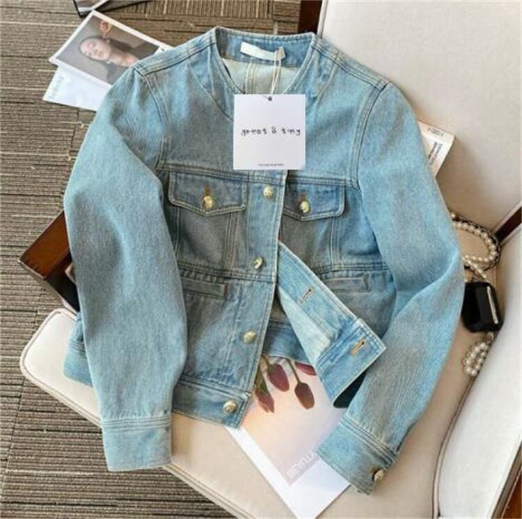 商品名:デニムジャケット コート 短いスタイル ライトブルー カジュアル 春 秋